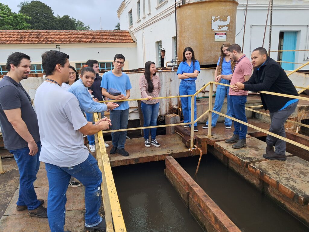 Eles foram recebidos no Daae por Bruno Bernardoni Oliveira e Ricardo Domingos dos Santos Junior, engenheiros da Divisão de Planejamento, e pelo químico Daniel Rodrigues da Silva, da Divisão de Tratamento de Água e Esgotos.