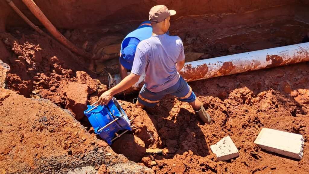 Para execução do serviço, o fornecimento de água foi interrompido, podendo ocasionar baixa pressão ou desabastecimento nos imóveis sem caixa d’água dos bairros Jardim Itália, Jardim Portugal, Jardim das Palmeiras e Jardim Palmares.